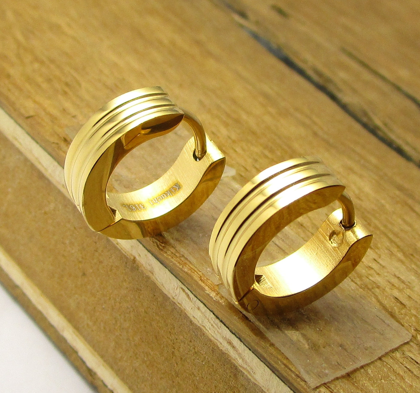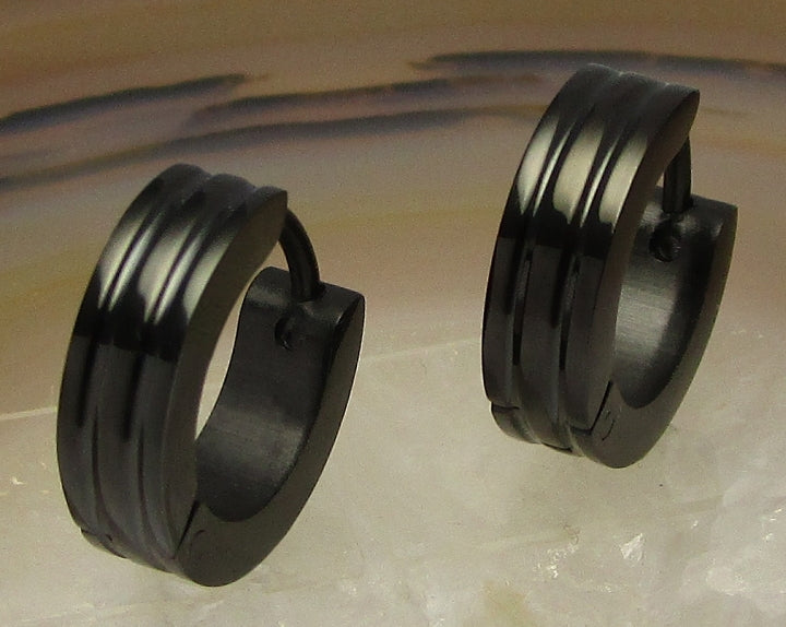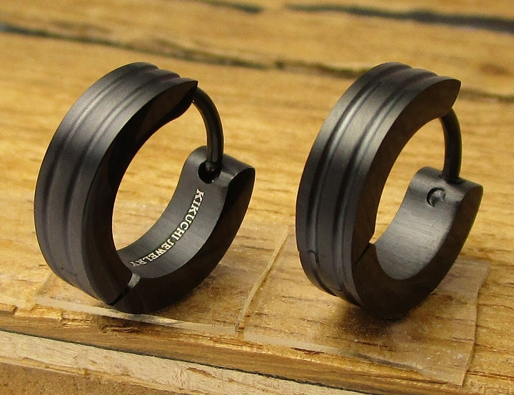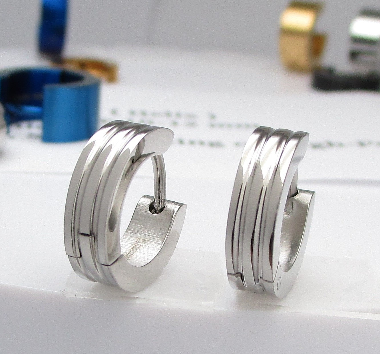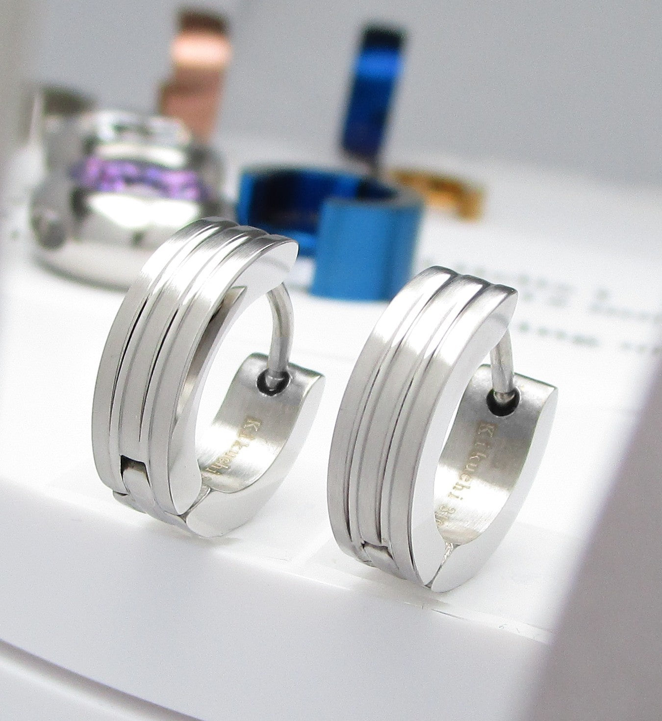 ✨ Unisex Edelstahl Ohrringe Creolen 2 Rillen Gerade Hoop Silber Blau Gold Schwarz ER15120