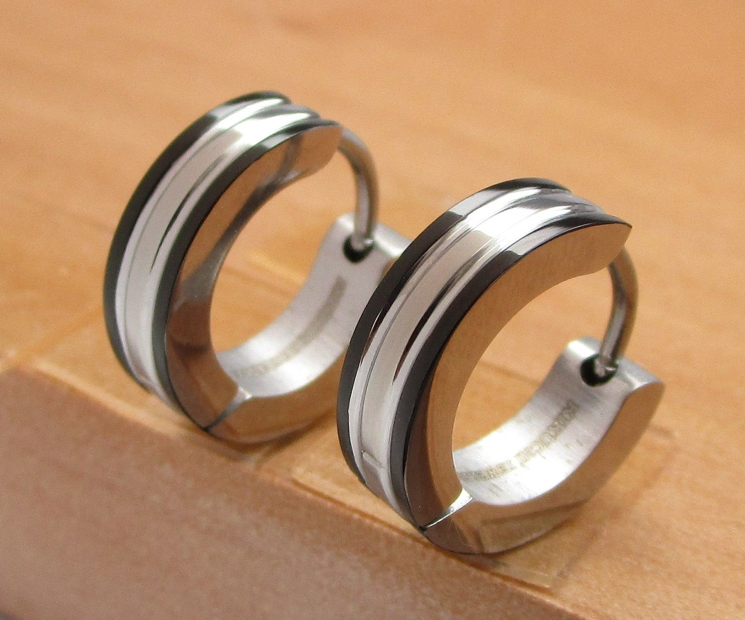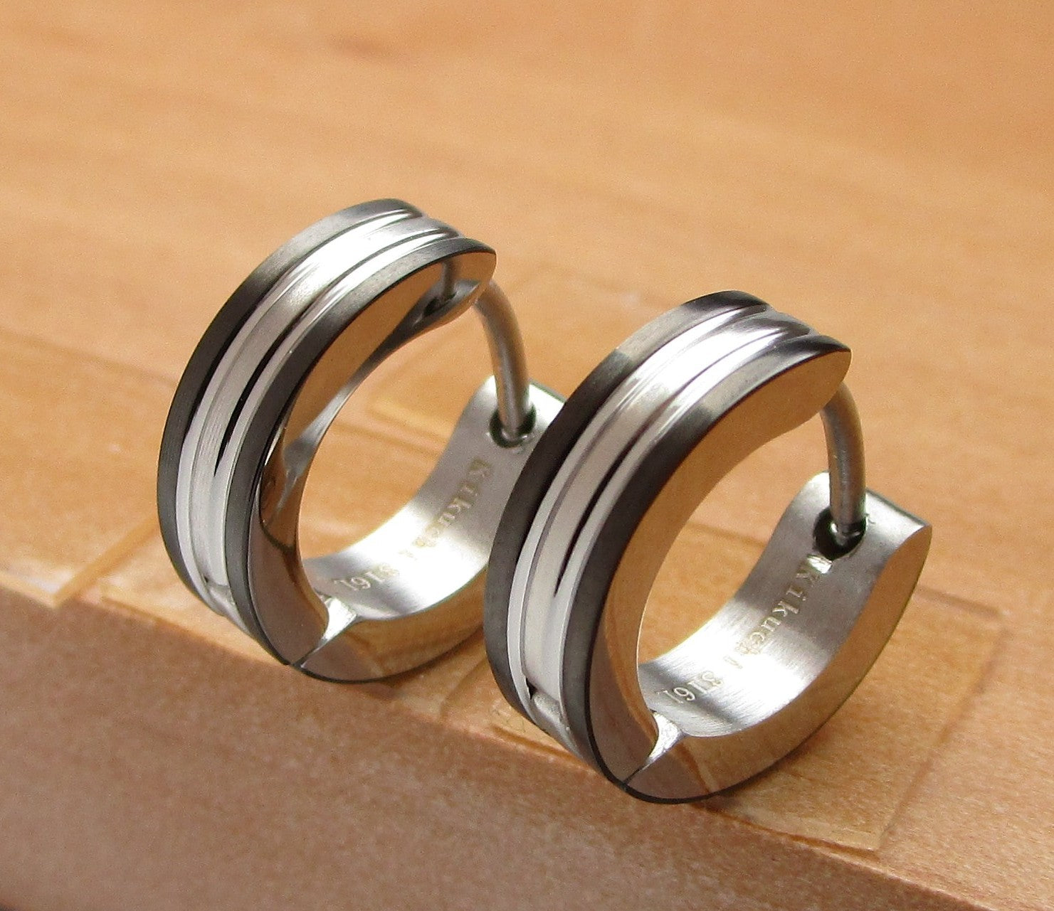 🔳  Edelstahl Ohrringe 4 mm Klapp Creolen 2 Rillen Matt & Hochglänzend