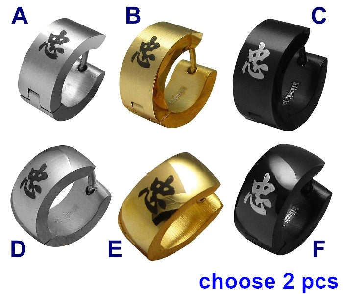 ✨Edelstahl Ohrringe klapp Creolen Gerade Gebürstet & Bogen Hochglänzend Kanji-Tattoo ER15110