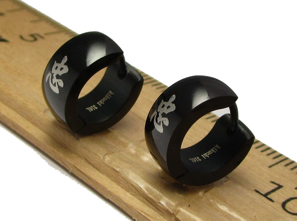 🔳Kikuchi Männer Damen Edelstahl Klapp Creolen Kanji-Tattoo Ohrringe