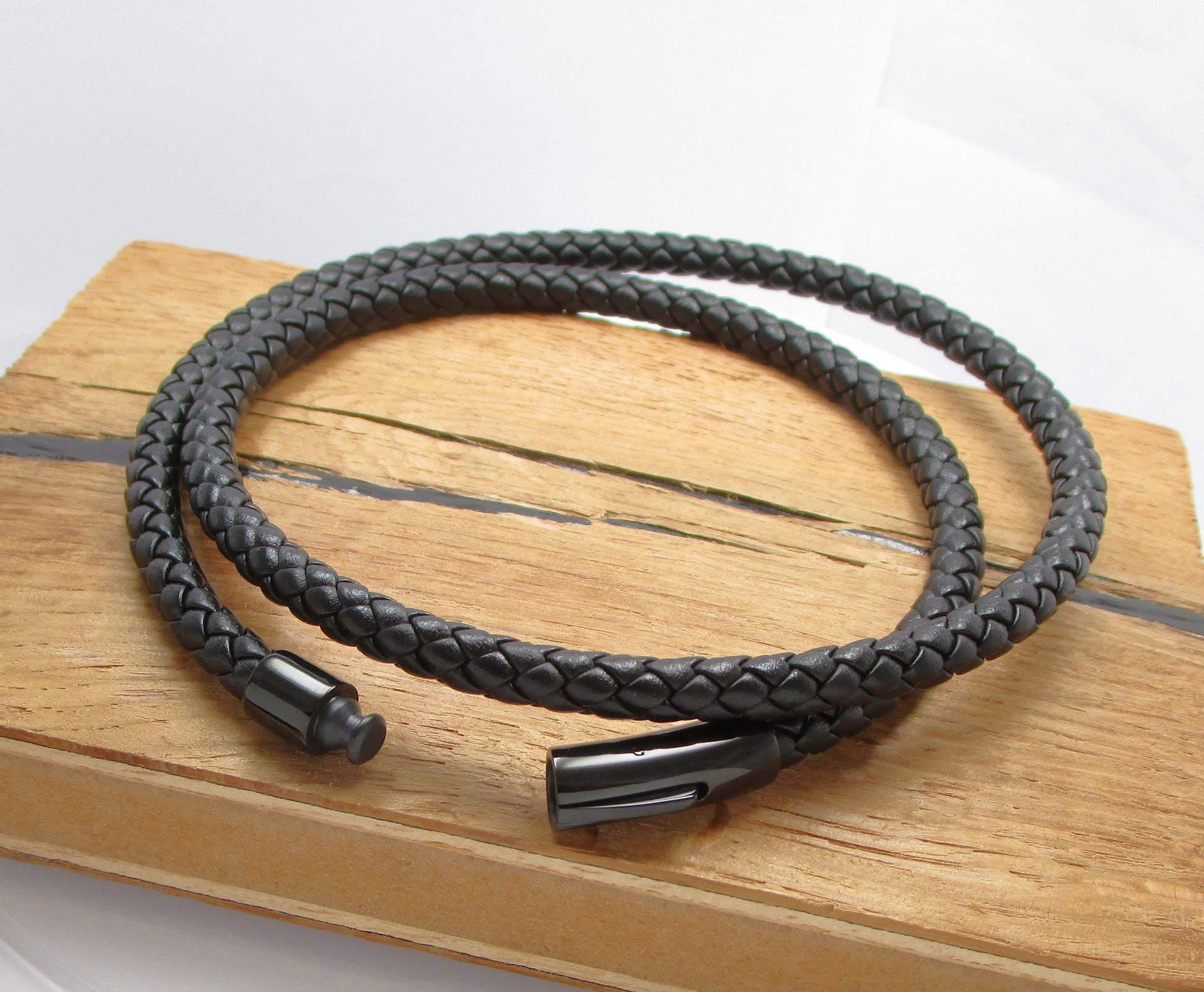 🔶 Unisex Lederhalsband Schwarz Kalbsleder aus sechs Bändern geflochten Ø 6mm mit Schwarzen Edelstahl Verschluss TOP