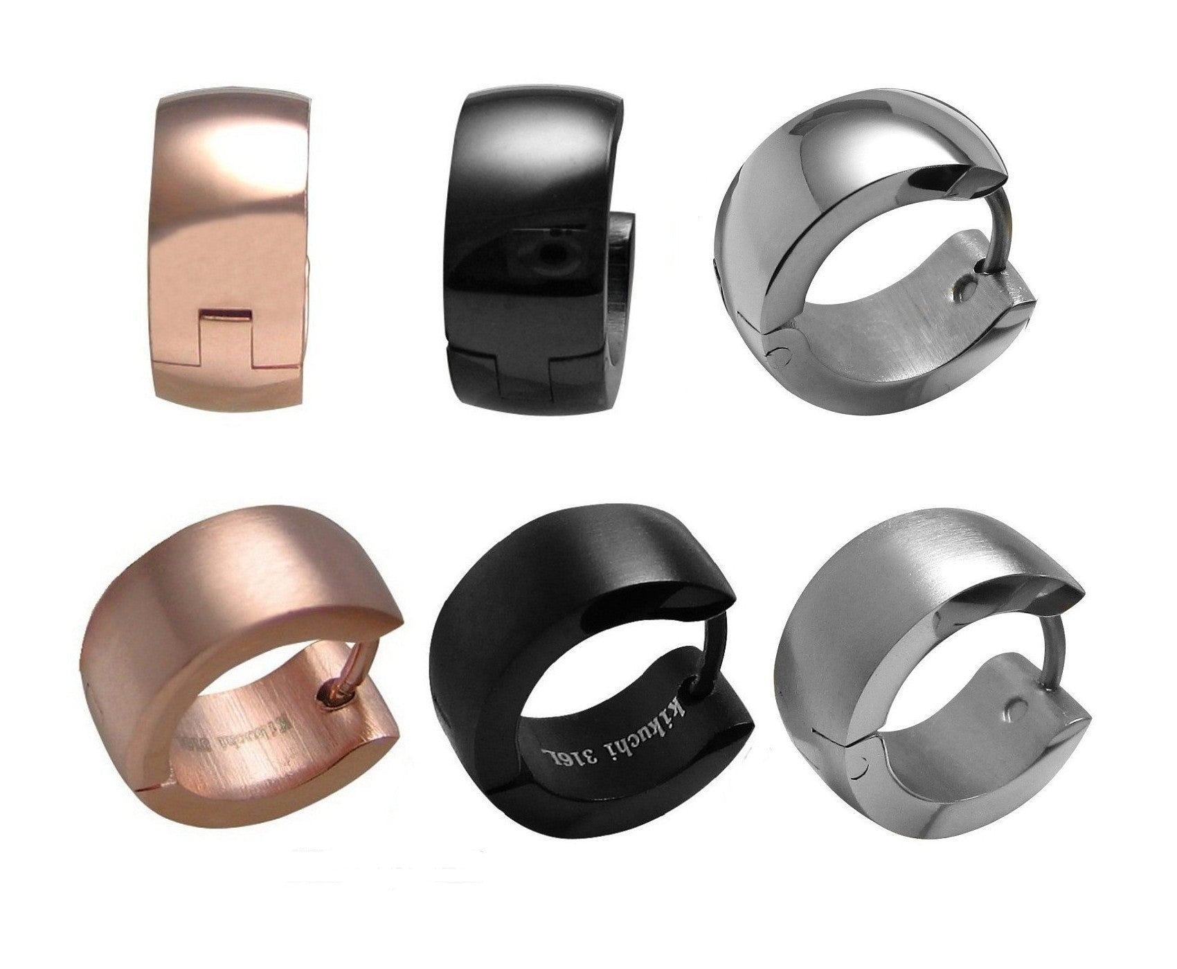 🎉 Edelstahl Ohrringe Ø 13 mm / 6 mm Bogen Creolen Schwarz Silber Rotgold Matt Glänzend