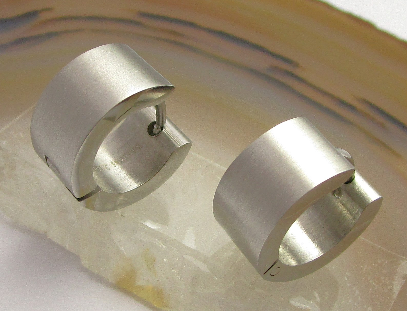 🔳 Edelstahl Breite Ohrringe Klapp Creolen 7mm Kantig Gebürstet Matt